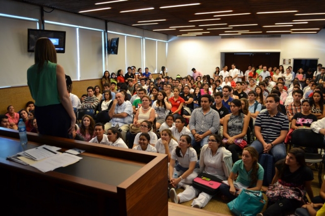 En su charla con los universitarios defendió la estrategia de seguridad de su esposo y criticó a los gobiernos anteriores que no enfrentaron al crimen organizado.