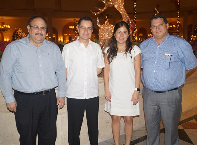 Pie de foto: Enrique Baquedano Pérez, director de la Escuela de Contaduría de la Universidad Marista de Mérida; Iván Aleksei Alemán Loza y Viviana Santiago López, vicepresidente de Supervisión de Procesos Preventivos y directora general adjunta de la Comisión Nacional Bancaria y de Valores, y Ermilo José Echeverría Castellanos, profesor de la Escuela de Contaduría de la Universidad Marista de Mérida.