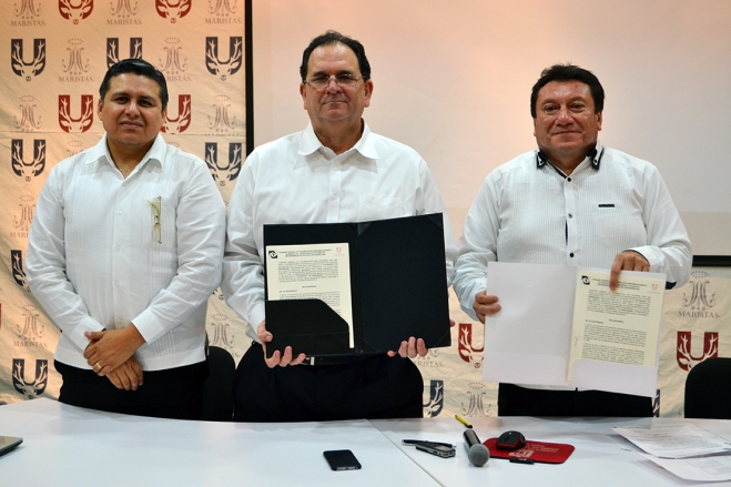 La firma se llevó al cabo en las instalaciones de la Marista, ante su personal académico y administrativo e integrantes de la agrupación profesional.