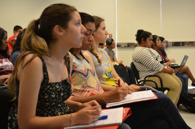 La delegación más numerosa la conforman los alumnos de la Texas A&M. En total, son cuarenta y seis estudiantes de esa universidad estadounidense. Ellos llegaron el sábado 14 de mayo. Aquí, participan en el curso Introducción a la investigación, impartido por el Dr. Javier Espinosa Fáller, director de investigación de la Universidad Marista de Mérida.