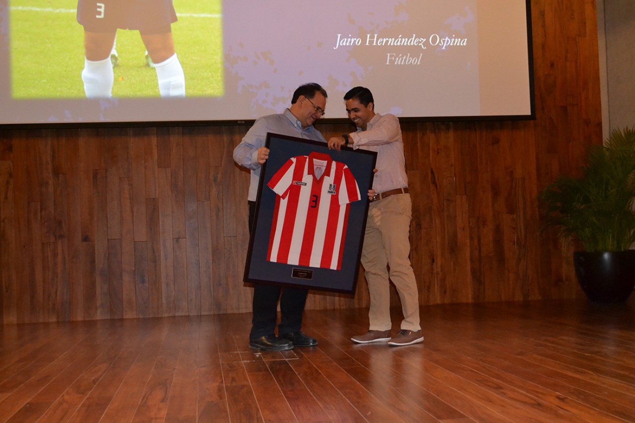 La ceremonia inició a las 8 de la noche en el auditorio “Hno. Pablo Hernández García”, con la entrega de un reconocimiento a 10 de nuestros muchos ex deportistas que a través de su trayectoria han dejado ya una huella en nuestro legado deportivo, ellos son: Rosalía Correa Cámara, Arely Ruíz del Hoyo, Jairo Enrique Hernández Ospina, José Elías Alam González, Roberto Carrillo Cuevas y José Carlos Puerto Patrón, de fútbol; Sergio José Moreno Cárdenas y Sergio Luis Carrillo Durán, de básquetbol; Diana Anahí Méndez Peniche y Juan Pablo Peraza Sosa, de voleibol. El rector Miguel Baquedano Pérez fue el encargado de entregarles la réplica de una playera rayada, la misma que tantas veces defendieron en torneos de liga, de copa y universiadas estatales y nacionales.