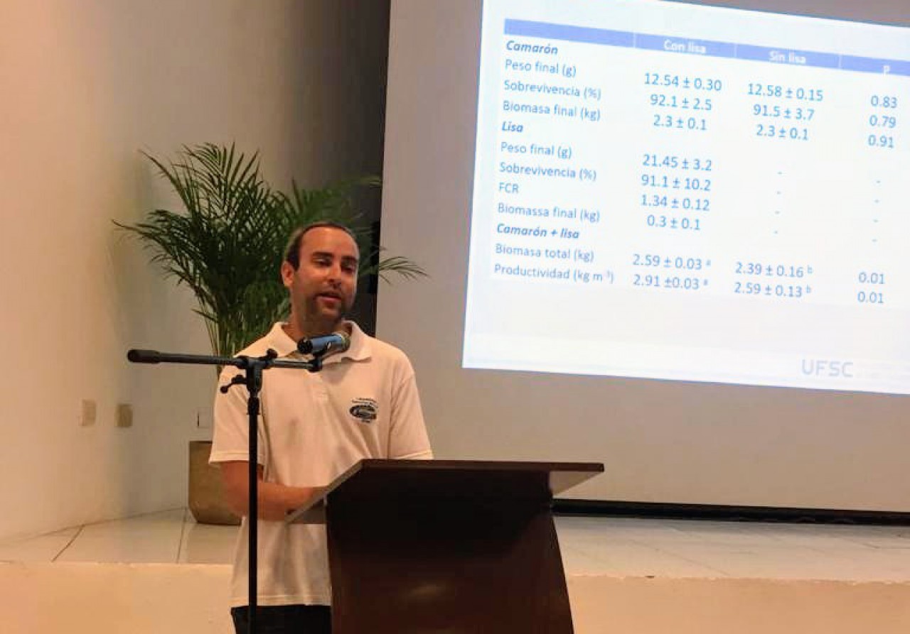 Con destacada experiencia en el cultivo de organismos acuáticos en sistema intensivos, el doctor explicó que la tecnología de BFT surge como una alternativa para la producción intensiva, biosegura y sustentable de producciones acuícolas. Su investigación se sustenta en la continua búsqueda por mejorar los sistemas de intensivos de producción evitando la excesiva acumulación de sólidos en el sistema, ofreciendo una nutrición adecuada y evitando la presencia de enfermedades bacterianas. Es de destacar que su tesis de doctorado titulada “Selección y utilización de bacterias probióticas en el cultivo de camarón marino”, fue ganadora del Premio Capes como mejor tesis de doctorado de Brasil en la categoría de zootecnia y recursos pesqueros en el año de 2010. Es autor de aproximadamente 82 artículos científicos publicados en revistas con alto impacto en el área de acuicultura. Recientemente fue reconocido con el Premio Fundación Bunge, en la categoría de juventud de Nutrición y Alimentación Animal.