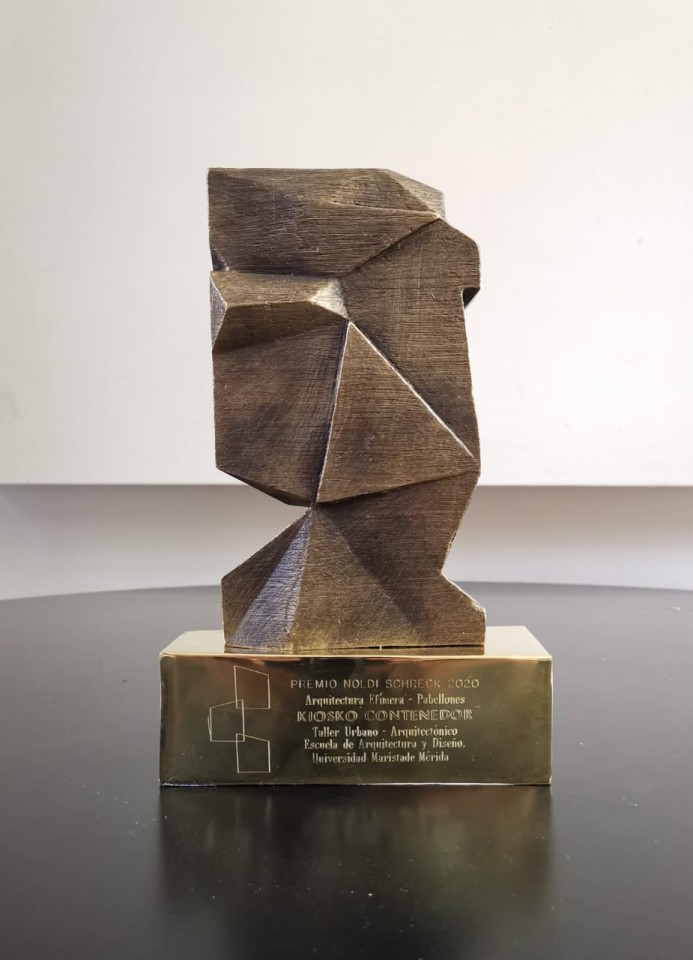 Otorgado cada año, el Premio Noldi Schreck es una celebración dedicada a promover lo mejor de la arquitectura y del interiorismo en México, bajo convocatoria de Glocal Design Magazine. La Escuela de Arquitectura de la Universidad Marista de Mérida participó en el certamen 2020 por tercera ocasión, obteniendo el primer lugar en la categoría “Arquitecturas Efímeras y Pabellones” y llevándose la estatuilla del reconocido escultor Aldo Chaparro, durante la ceremonia de premiación realizada el pasado jueves 11 de marzo a las 19:00 hrs. y transmitida en redes sociales.