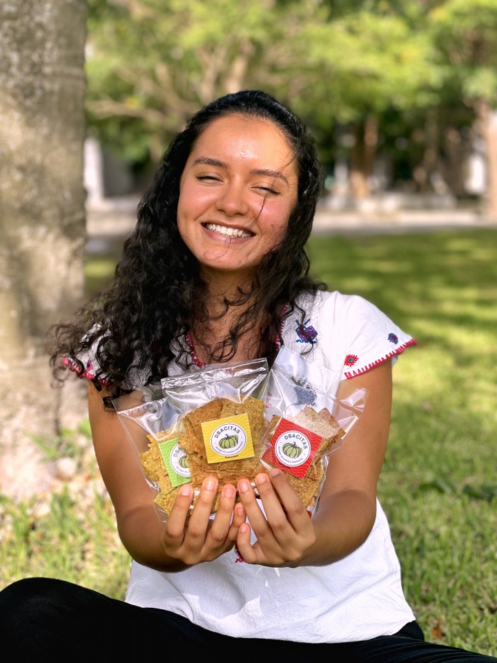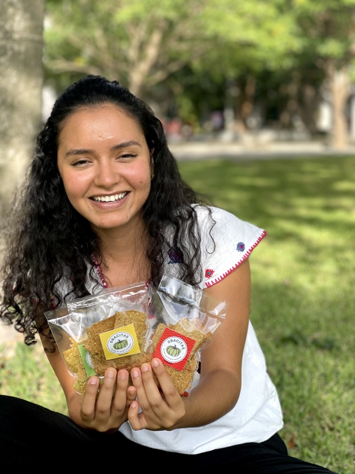D´BACITAS es una botana cuyo ingrediente principal es la calabaza local o calabaza yucateca. Este producto fue sometido a una evaluación sensorial en el mes de noviembre con alumnos y profesores de la Universidad y la aceptación fue muy buena, por lo que, para Alejandra Álvarez Romero, alumna creadora del producto, se abrió una excelente oportunidad para emprender y comercializar. El primer paso fue la participación del producto en el rally de innovación en nutrición organizado por la Universidad Modelo, la Universidad Latino y el IYEM en donde Alejandra tuvo la oportunidad de dar a conocer el propósito social y la propuesta de valor del producto, así como todo su modelo de negocio. En este evento D´BACITAS obtuvo el reconocimiento como el “Mejor Producto”, mismo que le valió para vincular el proyecto con el IYEM y postularlo para el programa “Transforma tu producto”, para este momento el producto ya estaba puesto en venta en la Universidad. Finalmente, D´BACITAS fue seleccionado para ingresar al programa cuya duración es de 3 meses en donde se trabaja a través de consultorías con expertos en el desarrollo de 5 áreas del modelo de negocio del producto: fiscal, comercial, procesos, redes sociales y costos. En marzo del 2023, el producto fue presentado en el 36º Congreso Nacional de la Asociación Mexicana de Miembros de Facultades y Escuelas de Nutrición A.C. (AMMFEN), en Puerto Vallarta, Jalisco.