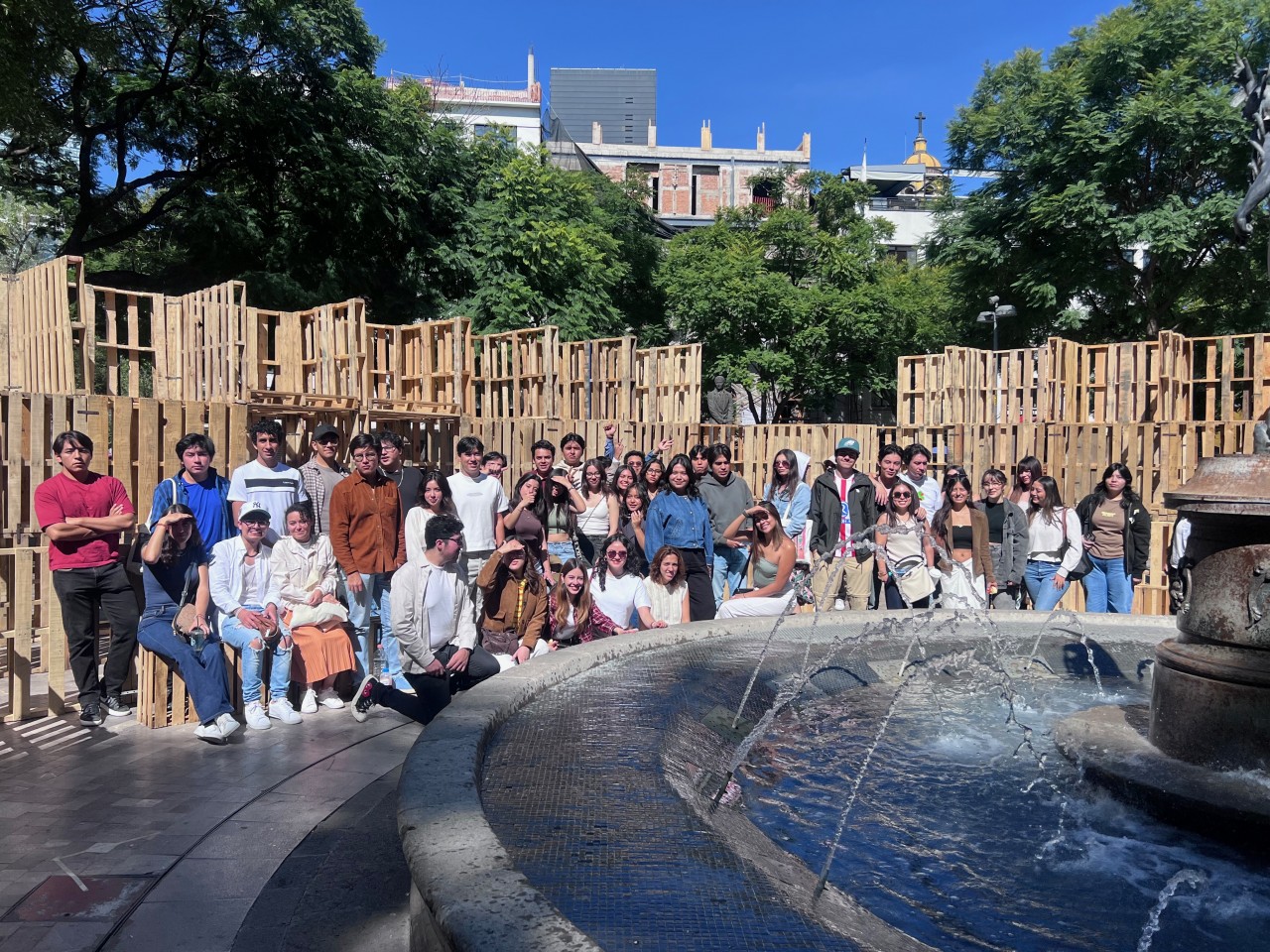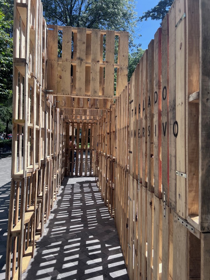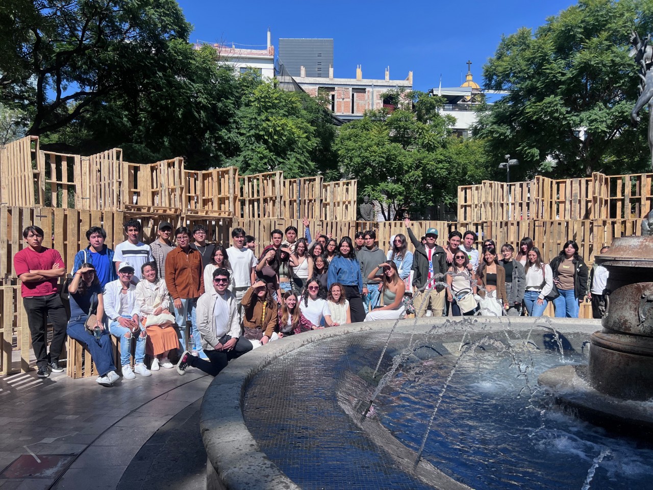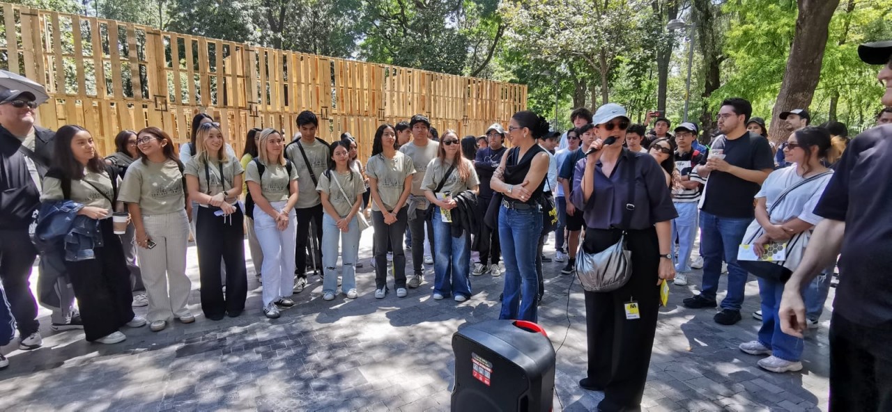 Como parte de la programación del festival, nuestros estudiantes presentaron el proyecto Tablado Inmersivo, un pabellón efímero diseñado especialmente para la Alameda Central, alrededor de la emblemática fuente de Mercurio. La propuesta traduce, mediante tarimas y muros de distintas alturas, un recorrido que lleva al visitante de la escala urbana al cobijo del parque, y de ahí a la intimidad del agua.