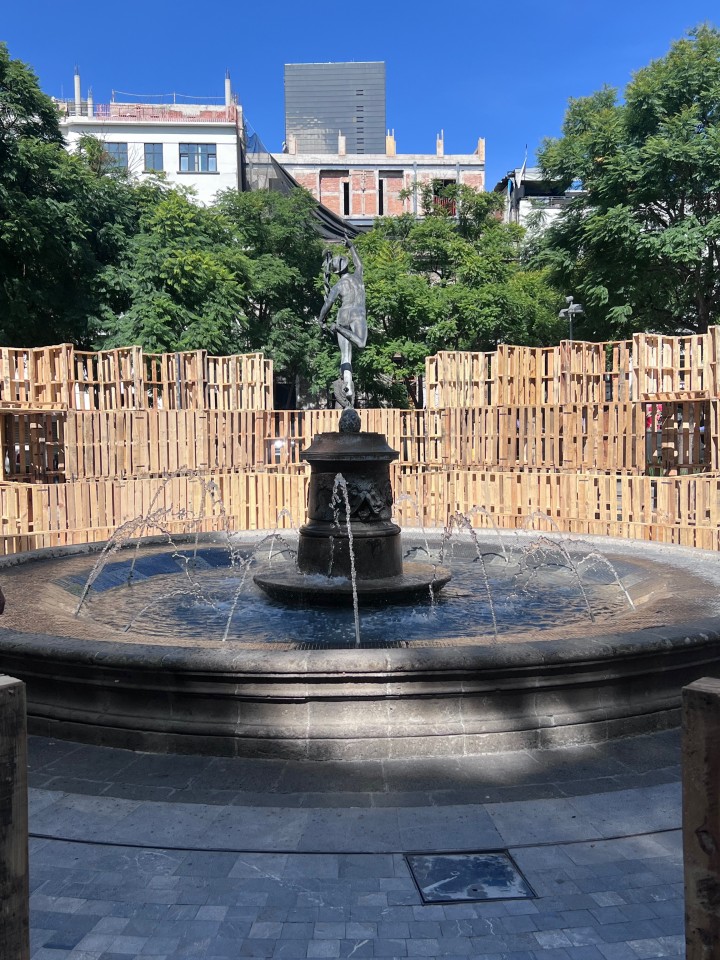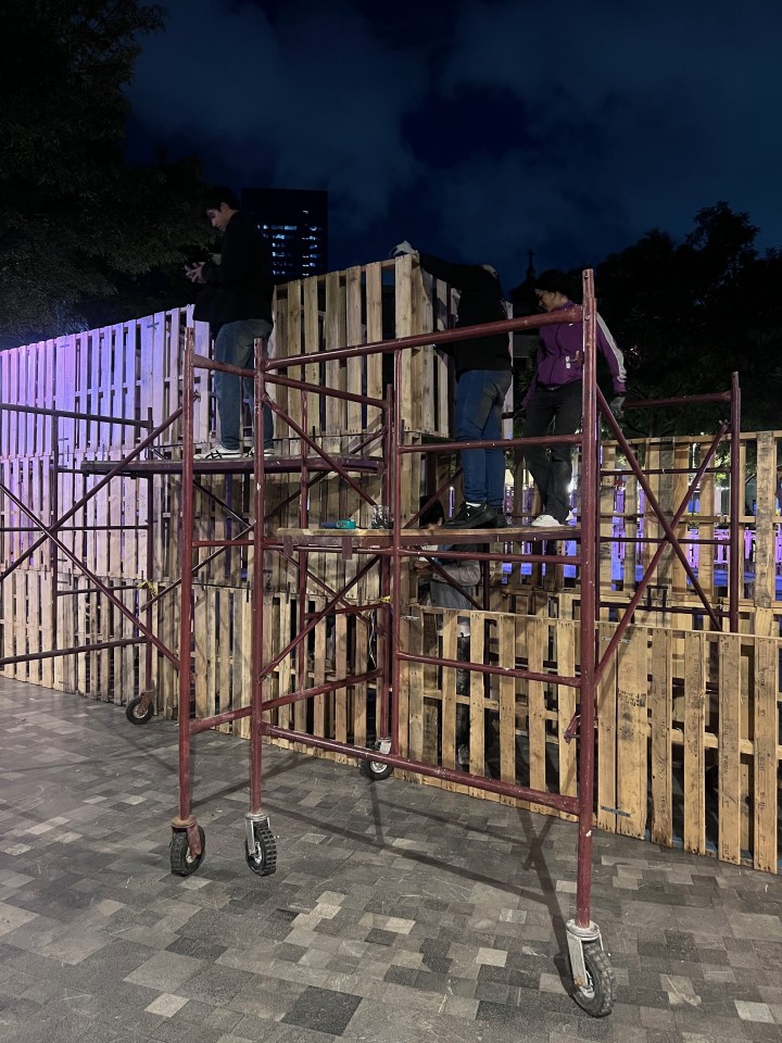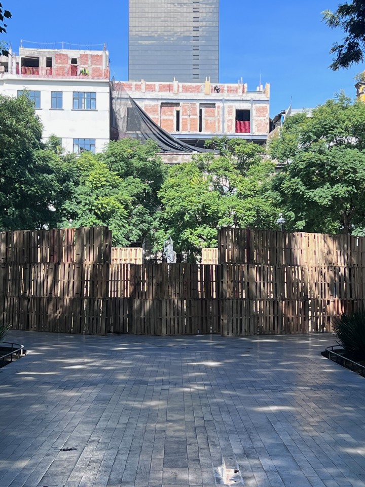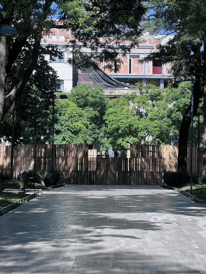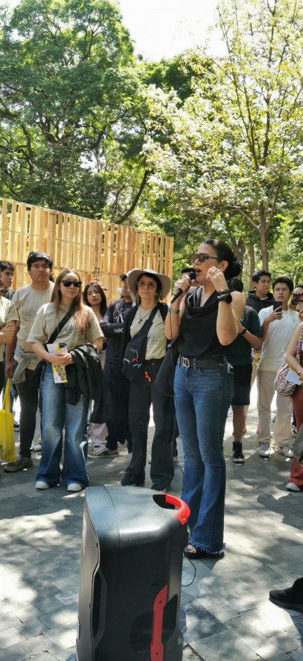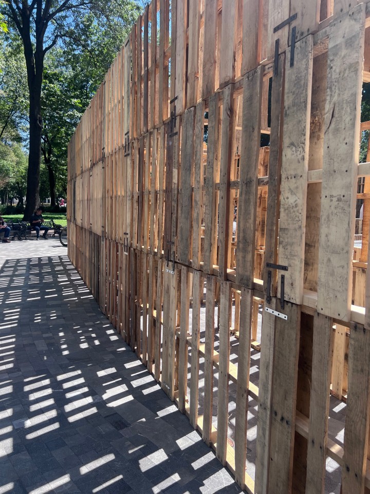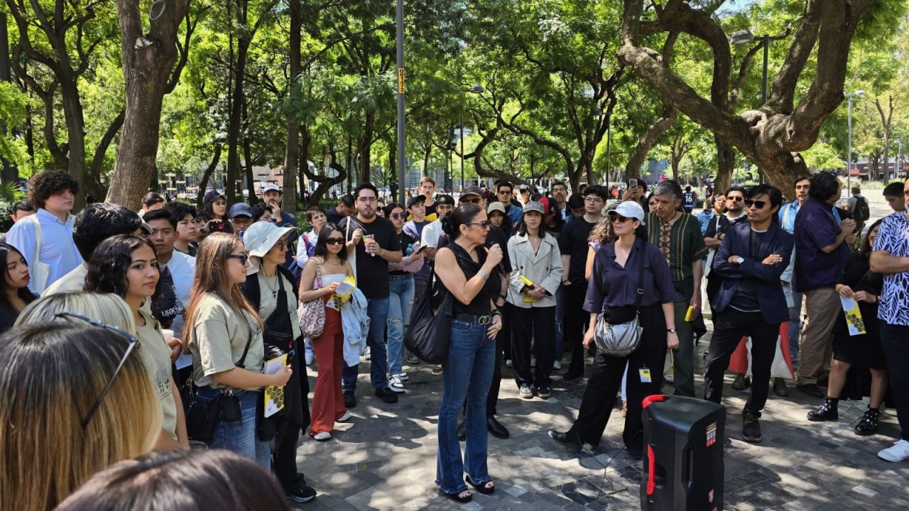Como parte de la programación del festival, nuestros estudiantes presentaron el proyecto Tablado Inmersivo, un pabellón efímero diseñado especialmente para la Alameda Central, alrededor de la emblemática fuente de Mercurio. La propuesta traduce, mediante tarimas y muros de distintas alturas, un recorrido que lleva al visitante de la escala urbana al cobijo del parque, y de ahí a la intimidad del agua.