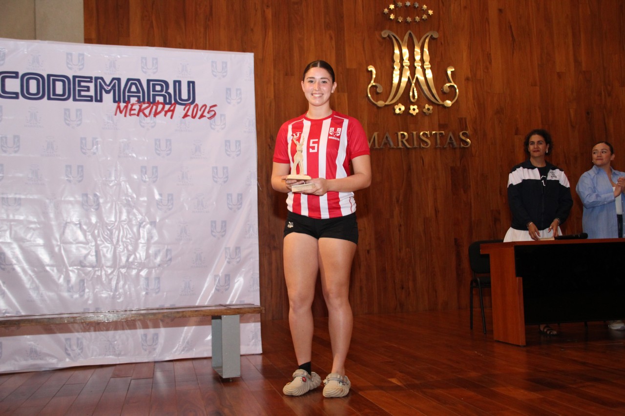 - Bárbara Aceves, del equipo de Tochito Bandera Femenil, recibió el premio “Espíritu Marista” por su testimonio de los valores maristas dentro y fuera de la cancha.