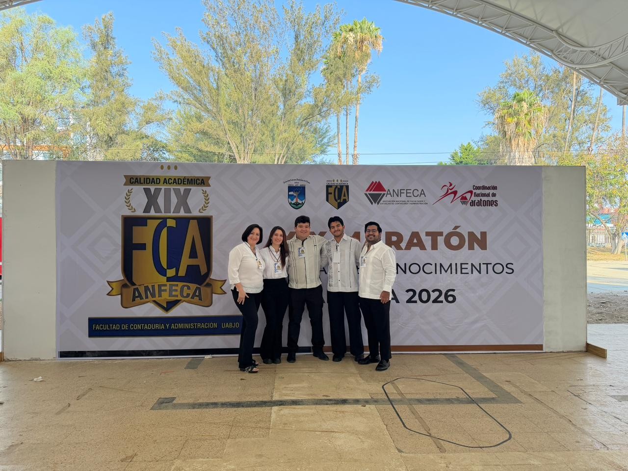 El pasado viernes 17 de abril de 2026 se llevó a cabo la fase regional del Maratón de Conocimientos organizado por la Asociación Nacional de Escuelas de Contaduría y Administración ( ANFECA ) en la ciudad Oaxaca, en donde el equipo de Finanzas de la Escuela de Negocios obtuvo su pase al maratón nacional por su sobresaliente desempeño.