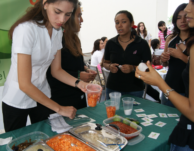 Se ofreció una muestra gastronómica para todos los visitantes que además incluyó una amplia gama de aspectos de la nutrición, desde las importantes medidas antropométricas (considerando peso, talla, medidas de cintura y demás, plicometría, presión arterial, etc.), que es parte de la nutrición clínica, pasando por la administración y desarrollo de productos novedosos como unas salchichas vegetarianas listas para consumir, una mermelada de frutos tropicales, unas ricas palomitas con chocolate, unas nutritivas tortillas de arroz y avena, así como un novedoso preparado para hotcakes a base de harina de semillas del árbol de Ramón; en dicho evento, se contó también con la presentación de productos como yogurt, lábne, queso y pan, elaborados a través de los años con la ayuda de diferentes microorganismos como bacterias y levaduras.