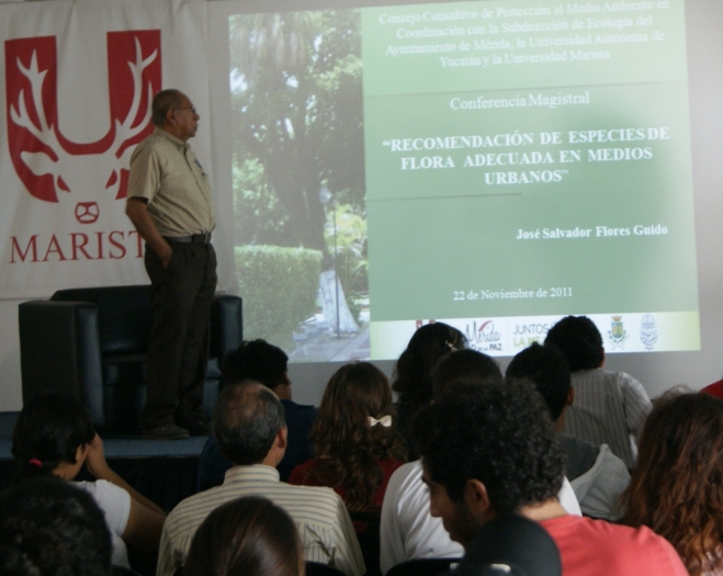 El pasado lunes 22 de noviembre a las 10 am el Dr. Salvador Flores Guido impartió la conferencia magistral  “Recomendaciones de especies de flora adecuadas en medios urbanos”, la cual tuvo como objetivo el informar sobre las especies más recomendables para sembrar en las distintas áreas urbanas de nuestro estado y la mejor manera de hacerlo para evitar los efectos no deseados como falta de adaptación y levantamiento de banquetas.