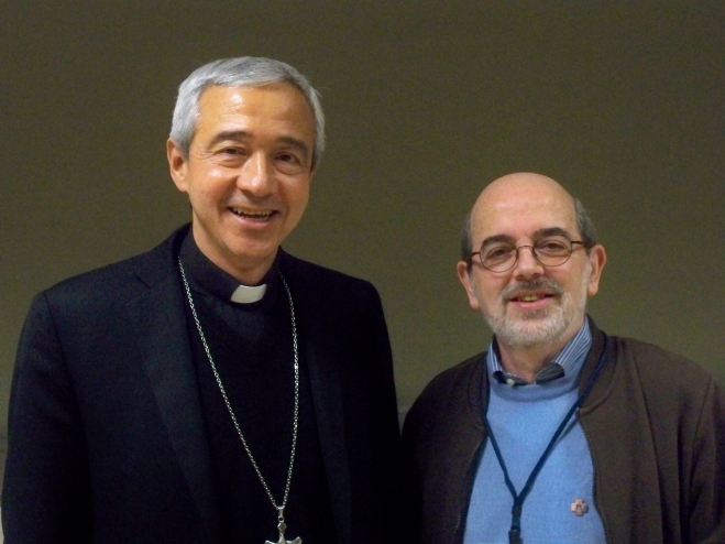 --Una alegría extraordinaria. Ahora que viajo tanto por los cinco continentes es de llamar la atención con cuántas personas me encuentro y me dicen: Yo fui alumno marista… Así saludo a religiosos, laicos comprometidos, padres de familia, Obispos como tú Jorge Carlos, sacerdotes, deportistas… Y esa alegría me obliga a expresar que el Señor sigue llamando a cumplir una vocación, que puede ser como marista, como sacerdote, como profesional comprometido con la sociedad, como padre o madre de familia…
