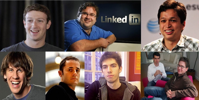 Te invitamos a conocer a David Karp de Tumblr, Ben Silbermann de Pinterest, David Crawley de Foursquare, Mark Zuckerberg de Facebook, Reid Hoffman de LinkedIn y Biz Stone, Jack Dorsey y Evan Williams de Twitter.