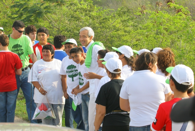 Como parte de su programa Maristas Verdes, alumnos, maestros, padres de familia y auxiliares de las cinco instituciones que dirigen los Hermanos Maristas en Mérida invadieron desde muy temprano el sector nororiente de esa vía y protagonizaron una gran jornada de solidaridad social.