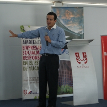 Los empresarios deben tener principios y valores, pero también tienen que ser congruentes, señaló Jorge Caamal Burgos, presidente de Coparmex Mérida, ante estudiantes de la Universidad Marista.