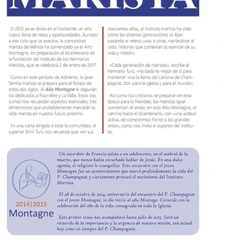 Hoy, jueves, se publicó en el Diario de Yucatán una plana en la que se recuerda que la comunidad marista recibe al 2015 en pleno Año Montagne, uno de los tres que anteceden a la celebración de los doscientos años del instituto fundado por san Marcelino Champagnat.